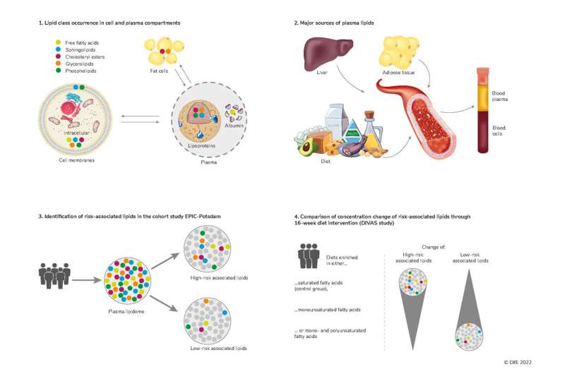 脂质代谢在心血管疾病和2型糖尿病的发生发展中起着重要作用。然而,目前对其分子关系知之甚少。来自DIfE和DZD的Fabian Eichelmann博士领导的团队使用脂质组学(一种现代分析方法),确定了那些在统计学上与心血管疾病和2型糖尿病相关的脂质。此外,科学家们还发现,不饱和脂肪酸(FAs)比例较高的饮食会导致风险相关脂质的减少和低风险脂质的增加。研究结果发表在《Circulation》杂志上。