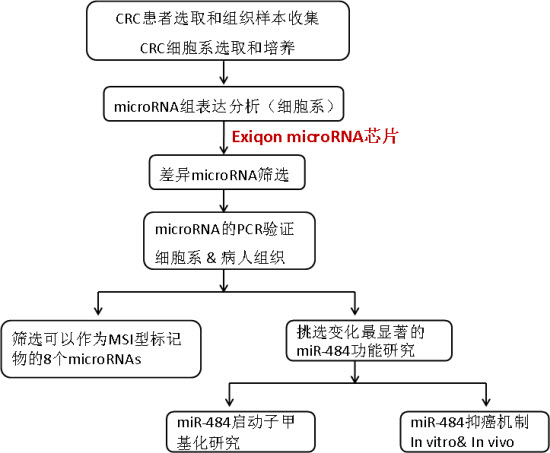 中国解放军总医院(301医院)韩卫东教授和第二军医大学孙树汉教授合作指导研究小组,采用microRNA芯片对MSI型CRC进行了系统全面的microRNA组研究